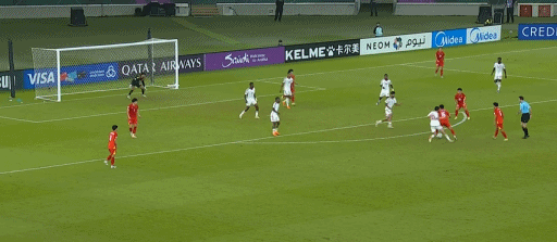 3分钟后,阿联酋队立刻做出回应。他们在右路传中,禁区后点的球员头球攻门,打在立柱上。不过,另一位球员立刻跟上,继续头球,将球送入球网。1-1。