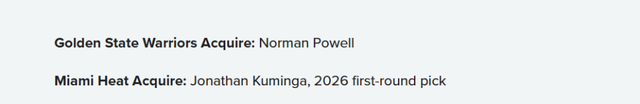 勇士得到:诺曼-鲍威尔