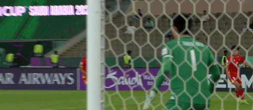 3分钟后,阿联酋队立刻做出回应。他们在右路传中,禁区后点的球员头球攻门,打在立柱上。不过,另一位球员立刻跟上,继续头球,将球送入球网。1-1。